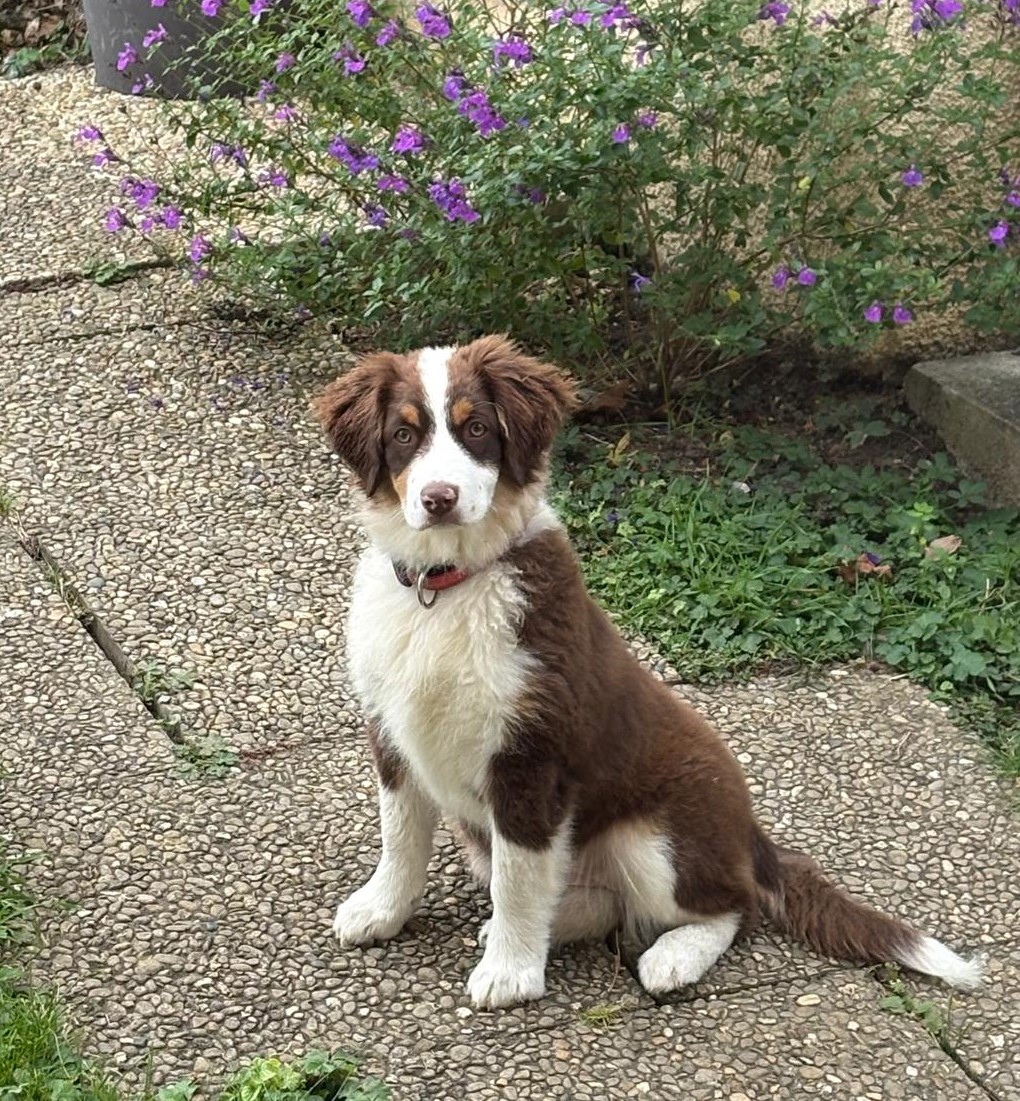 Ma toute dernière recrue s’appelle Alka, c’est une femelle berger américain miniature. Elle est encore jeune mais elle commence à me suivre, en tant qu’observatrice pour le moment, afin d’apprendre son métier de chien médiateur. Elle adore jouer et être au centre de l’attention en particulier avec les enfants.